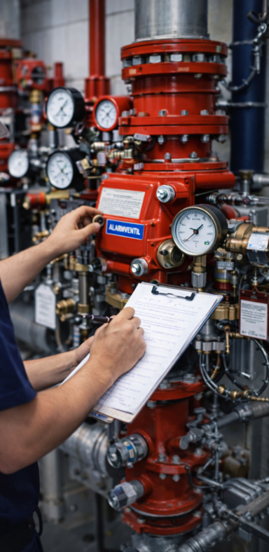 Prüfungen von Alarmventilstationen, Anzeigen, Armaturen und relevanten Bauteilen ohne Durchführung von Wartungs- oder Reparaturarbeiten. Der Fokus liegt auf Transparenz, lückenloser Dokumentation und objektiver Beurteilung gemäß geltender Anforderungen.